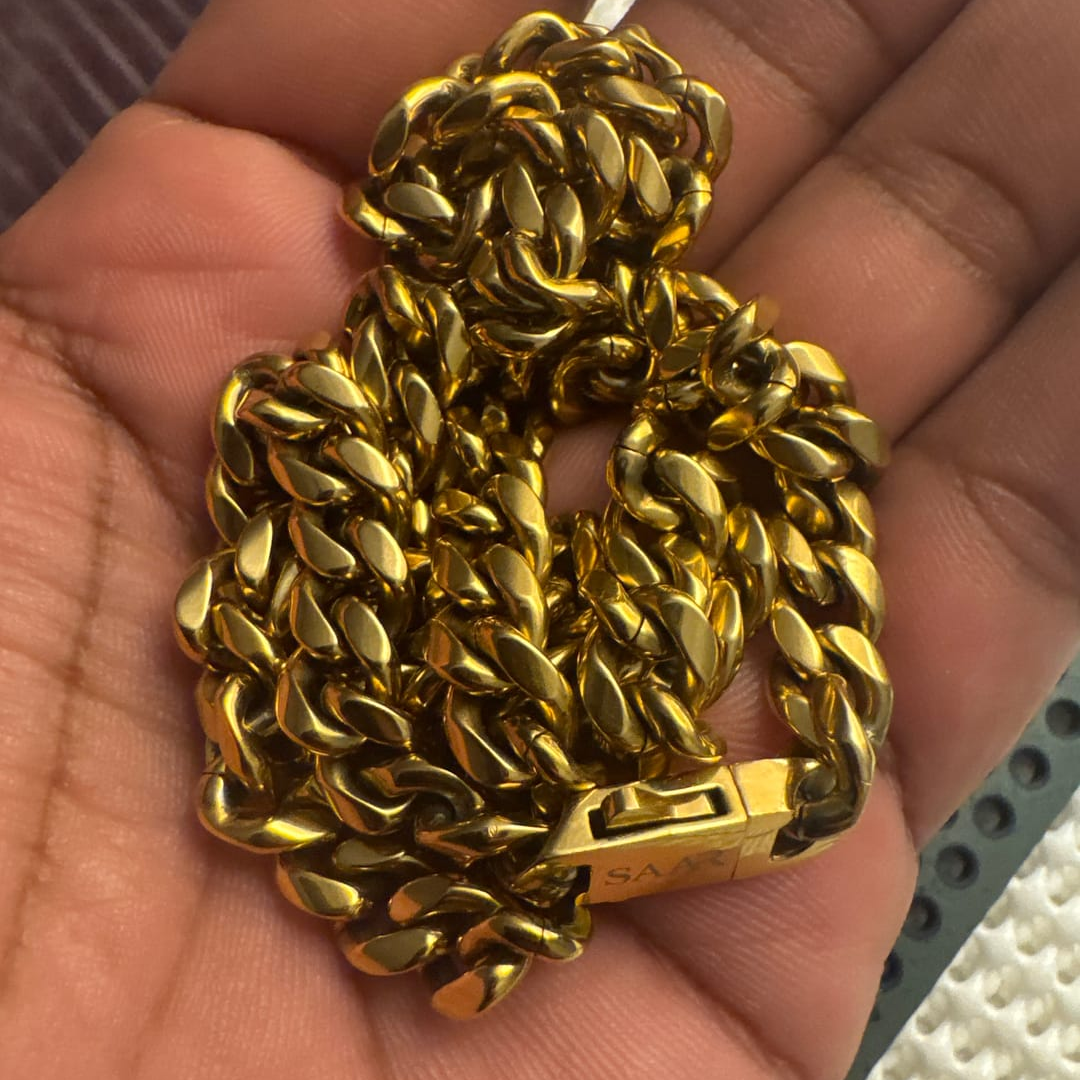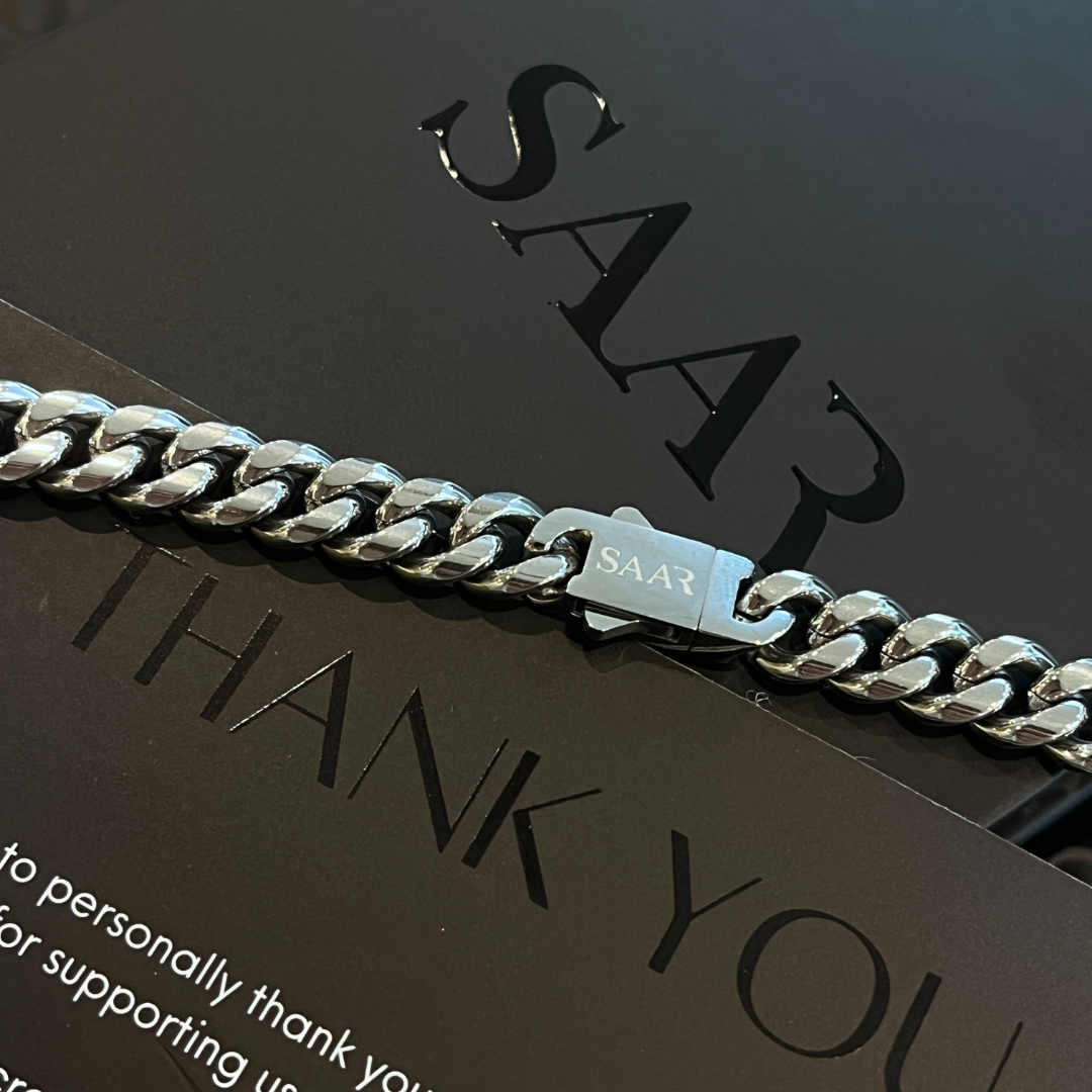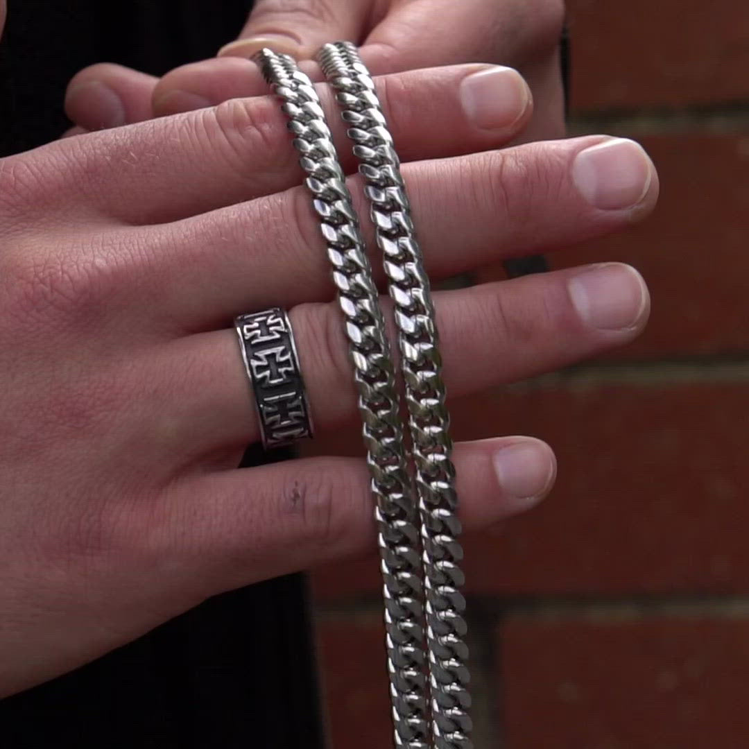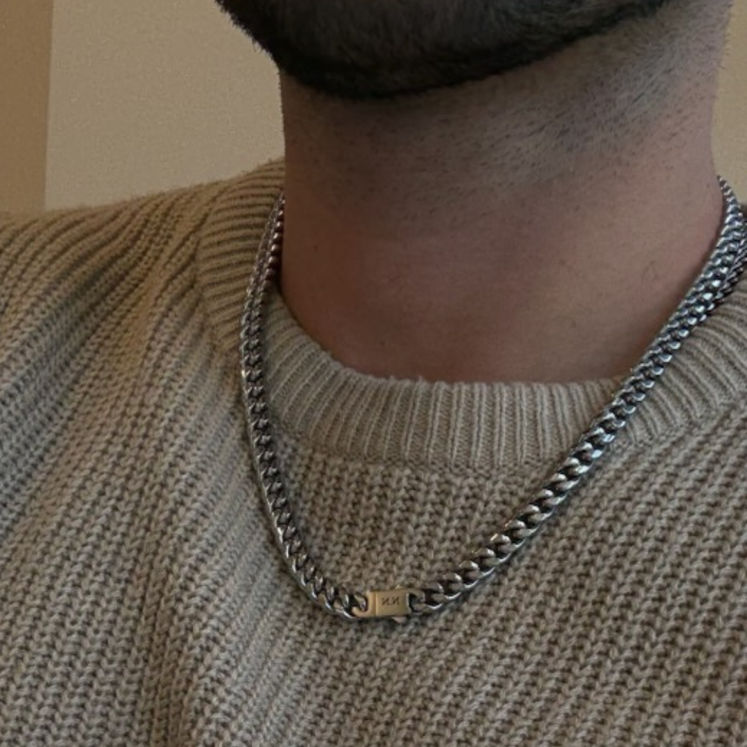 Crafted in premium stainless steel, it’s the kind of chain that doesn't flinch, fade, or fold. It’s not afraid of time, wear, or a little pressure- and neither are you.