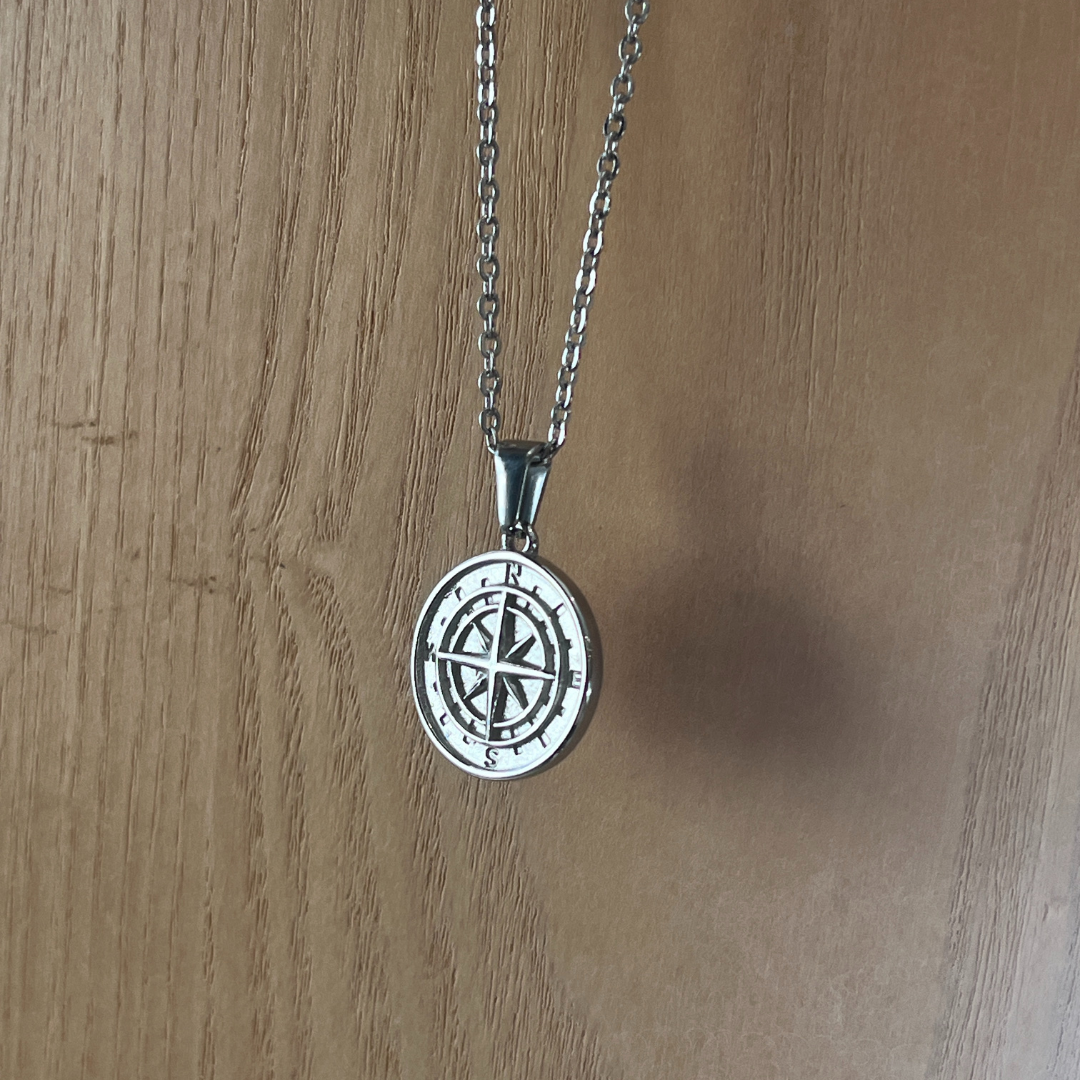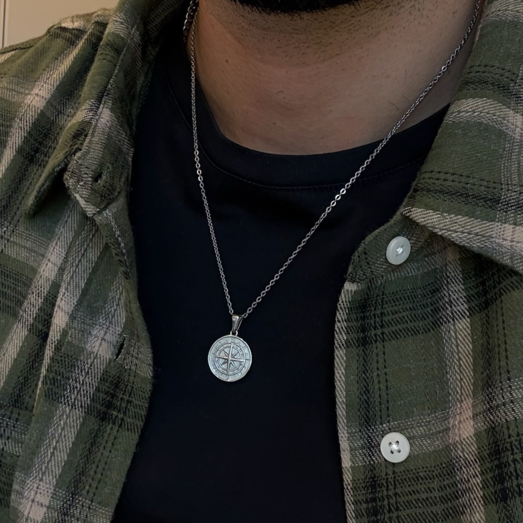 Stainless Steel Compass Pendant and Chain for Men