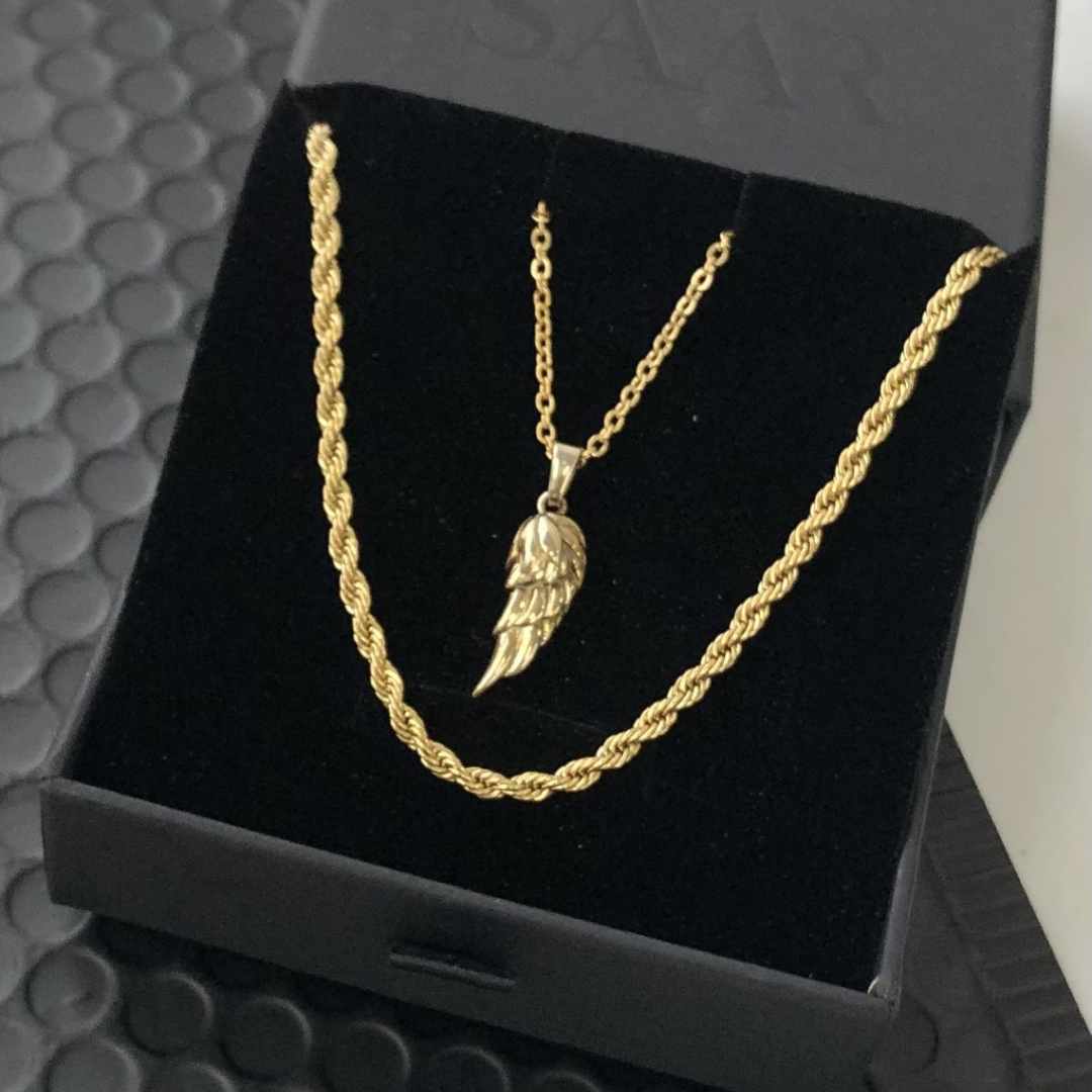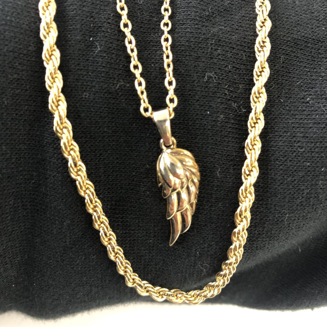 Elevate your style with our stunning Gold Wing Pendant Necklace. This exquisite piece features an 18k gold pendant with a captivating 20mm Angel Wing design, adding a touch of elegance to any outfit.