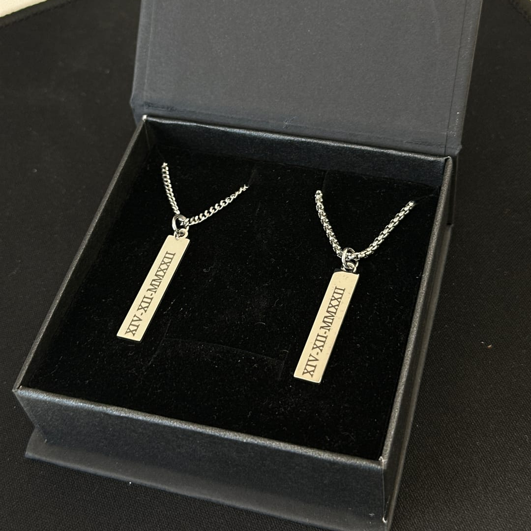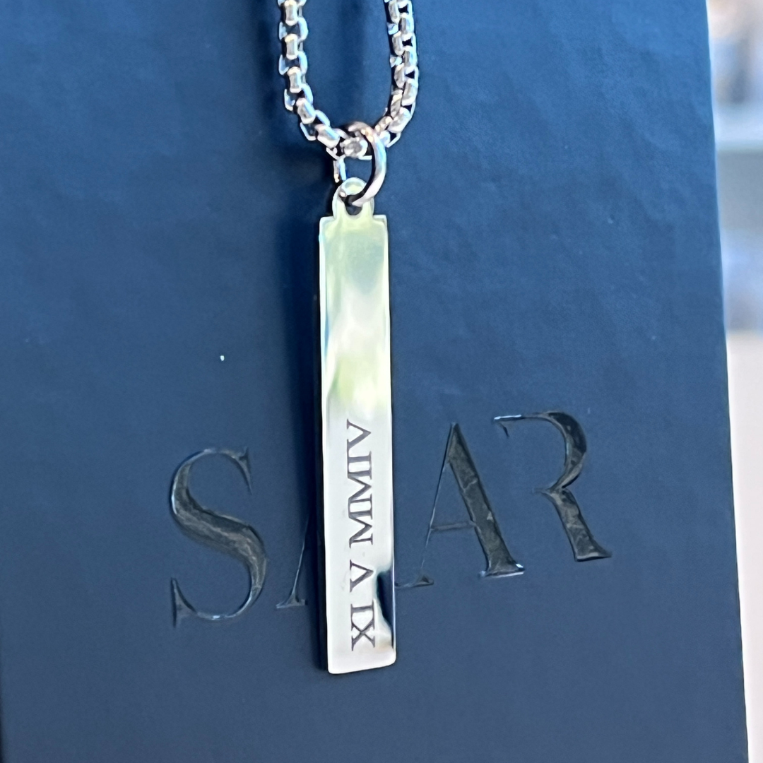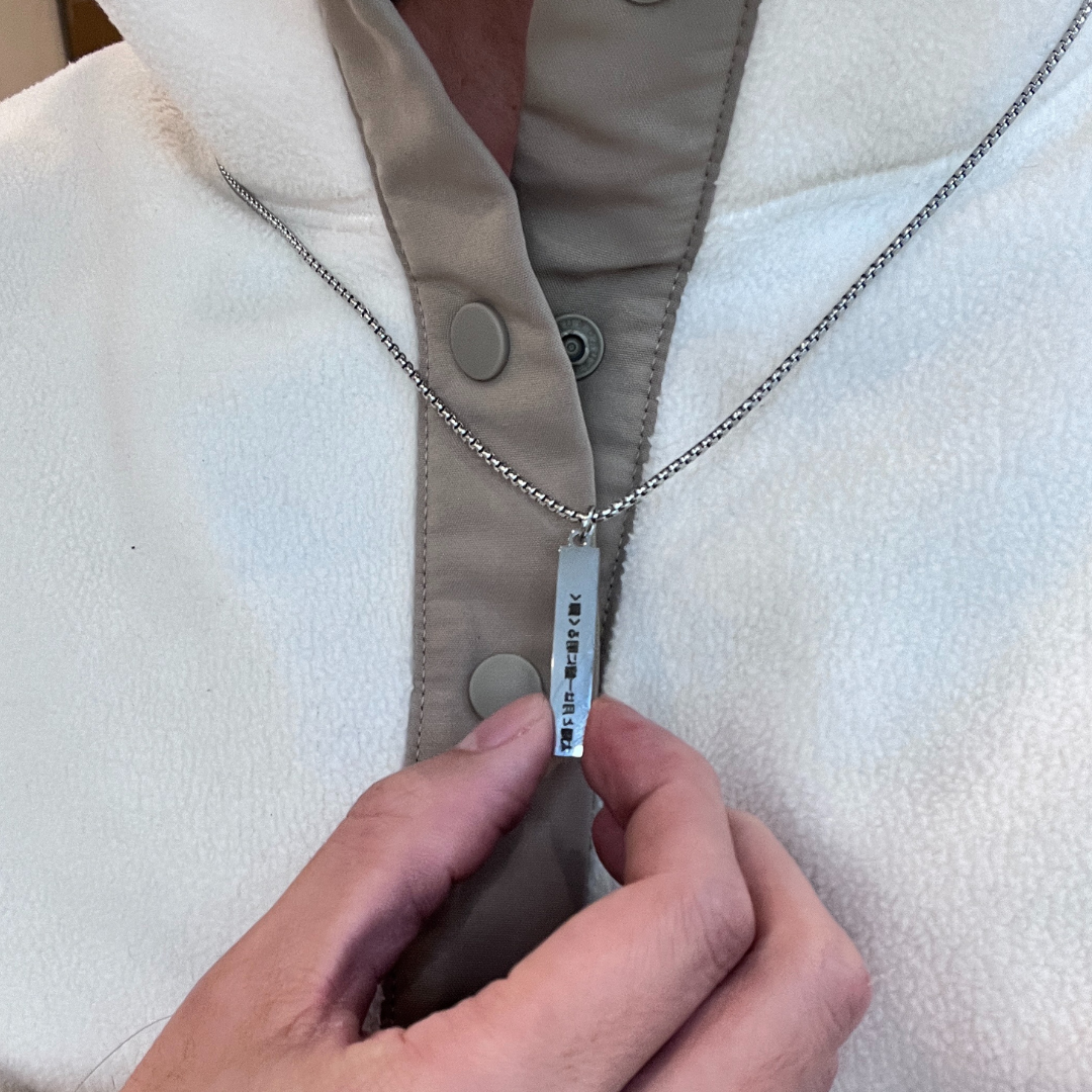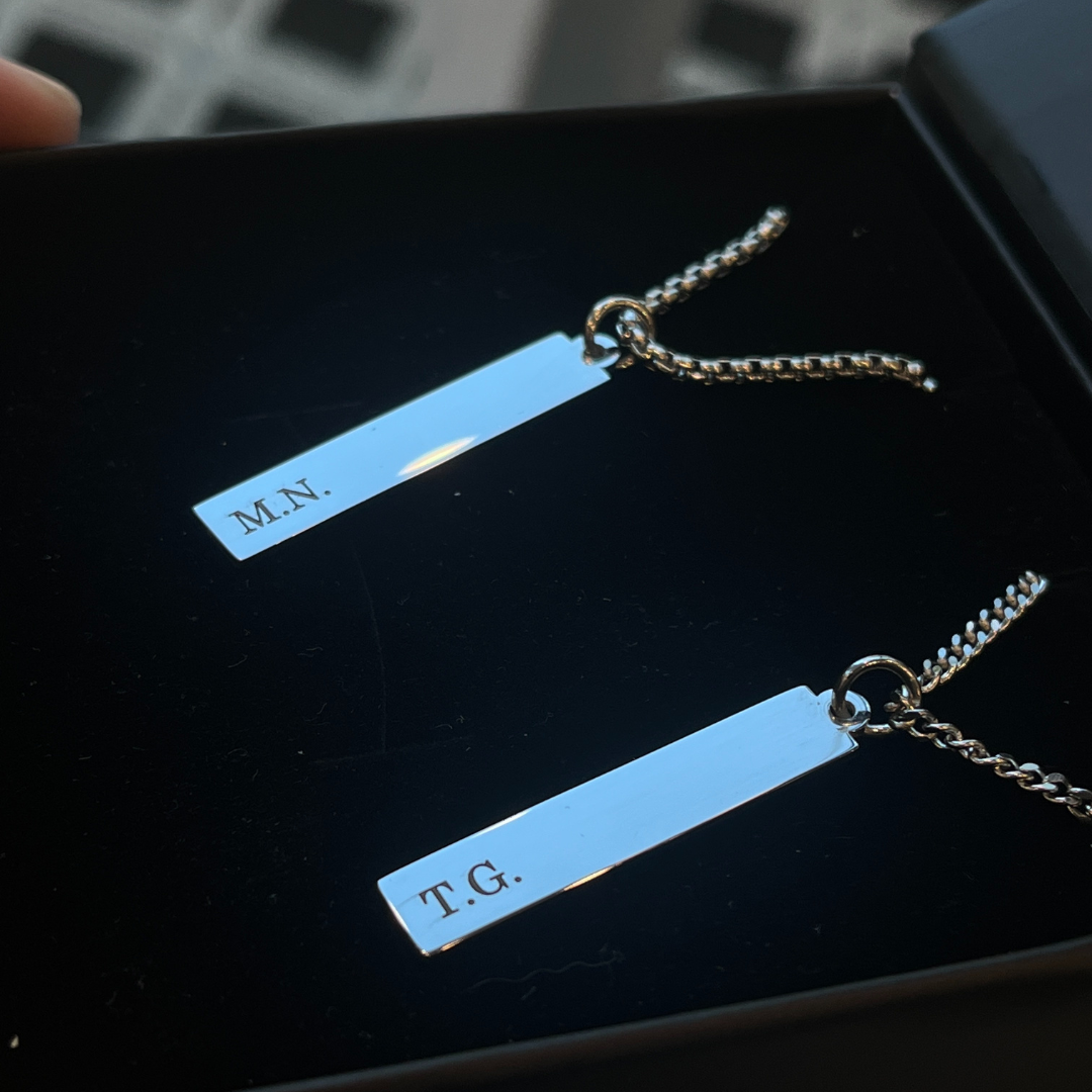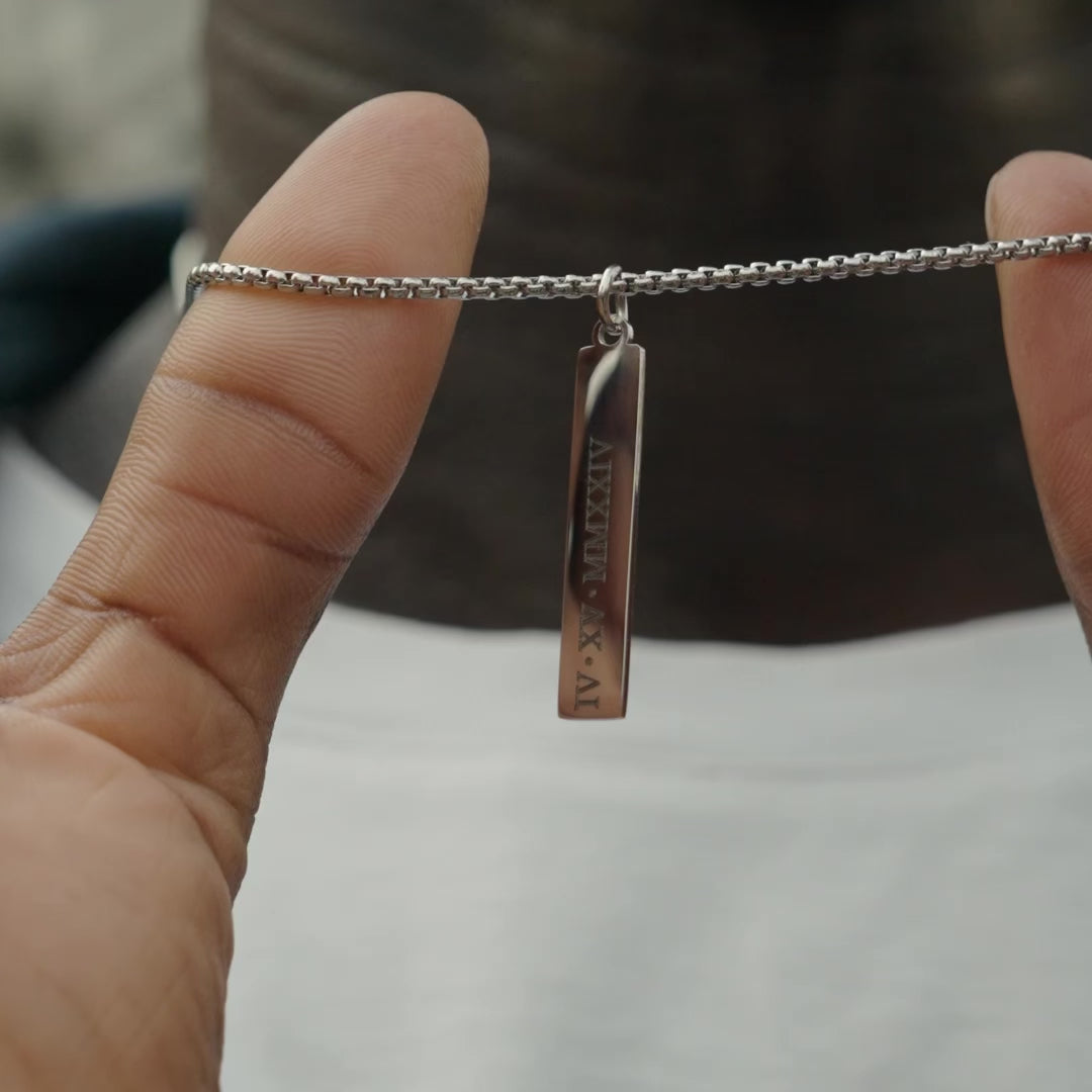 The Chase Necklace is simple by design and that’s exactly the point. Featuring a sleek rectangular pendant on a clean stainless steel chain, it’s made to keep things sharp, minimal, and effortlessly personal.