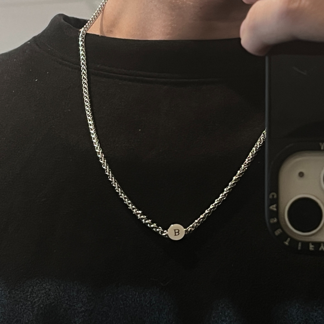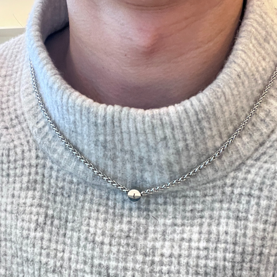 Crafted from polished stainless steel and finished with a bold, rounded pendant, Jordan comes engraved with your choice of name, date, or message. A detail that makes it yours, or theirs, in a way nothing else can.